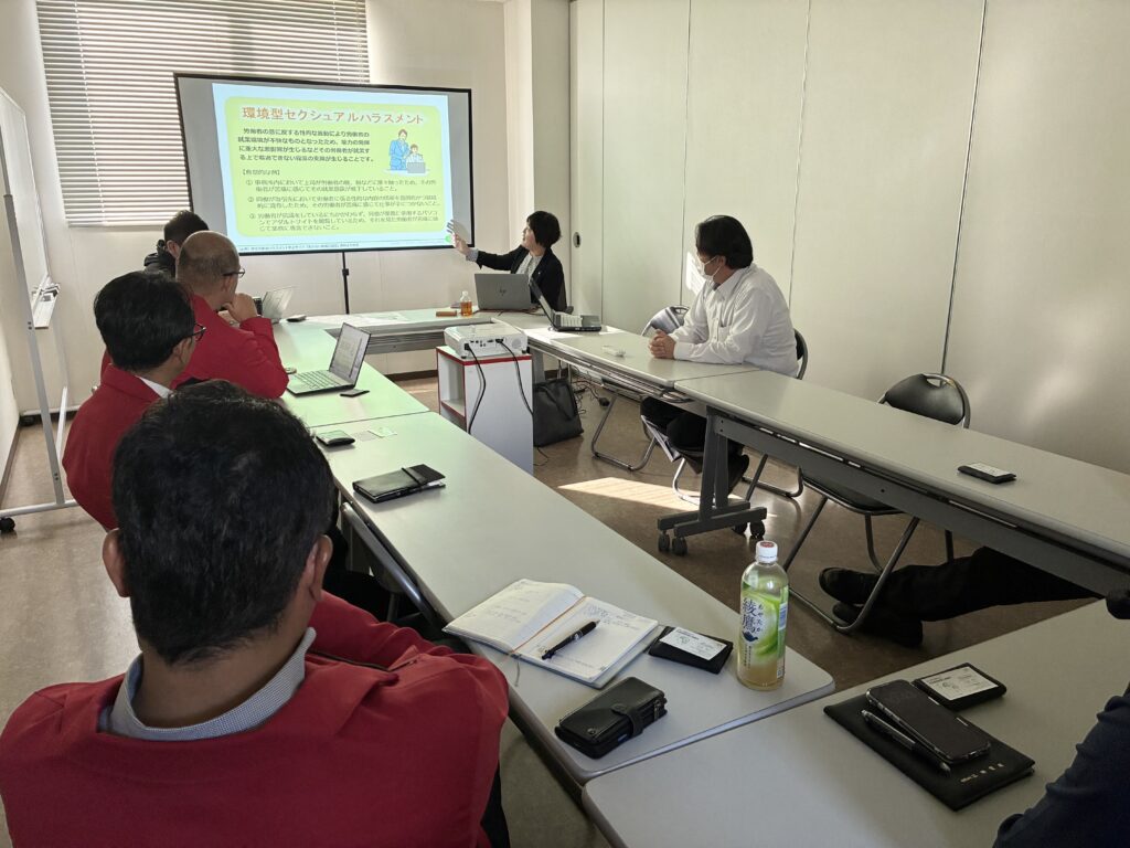 12月2日、特定社会保険労務士の石﨑憲子先生(いしざきのりこ社会保険労務士事務所)と内野裕太先生(内野裕太社会保険労務士事務所)をお迎えし、管理職向けのハラスメント研修および女性従業員限定のワークショップを実施しました。